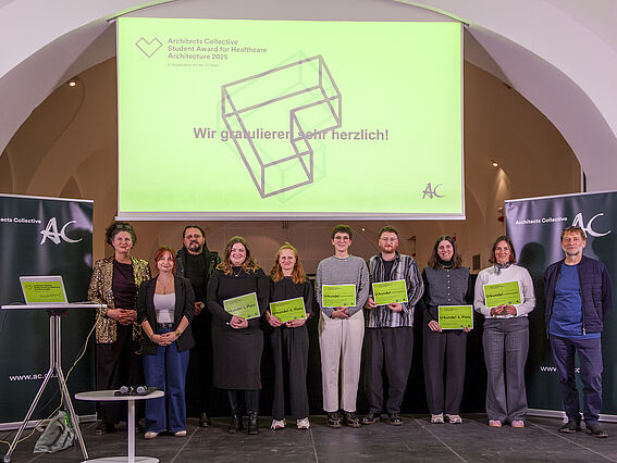On November 13, 2025, the designs and winners of this year's Architects Collective Student Award for Healthcare Architecture, presented for the second time in cooperation with TU Wien, were ceremoniously presented in the Prechtlsaal and awarded prize money totaling 9,000 euros.