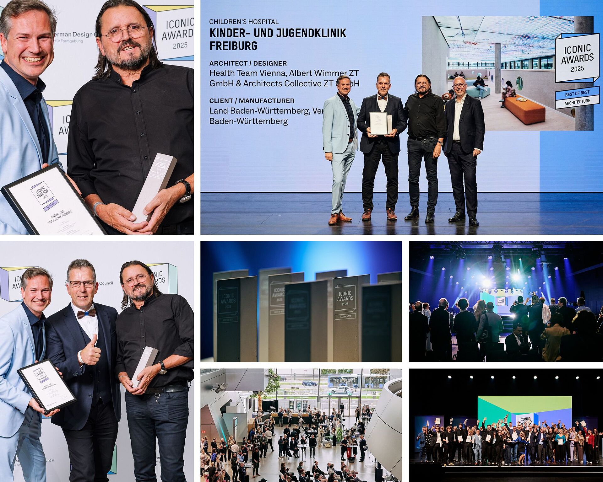 “The real estate management agency Vermögen und Bau Baden-Württemberg, which is responsible for the new construction of the Children's and Youth Clinic in Freiburg, shows how a public authority can pave the way for patient-oriented, healing, social and sustainable architecture. The centre was planned and realised by ARGE Health Team Vienna, a consortium of the two architectural firms Albert Wimmer ZT and Architects Collective ZT from Vienna. The spatial planning is commendable, with simple orientation and open, inviting meeting spaces that give young patients a feeling of lingering rather than waiting. Natural materials, art, a harmonious colour scheme, green roofs and terraces all contribute to recovery and well-being.”